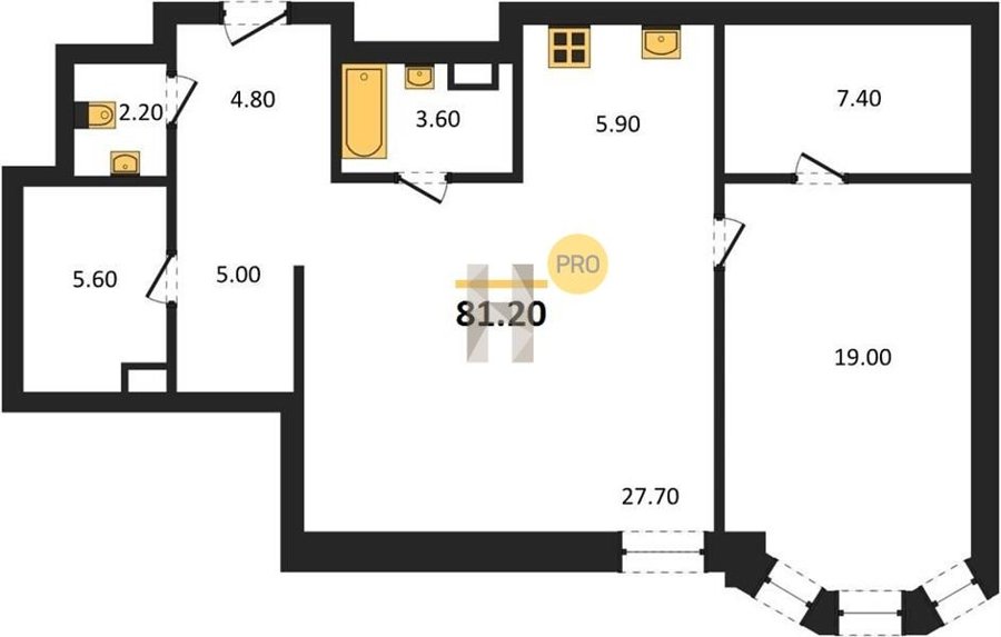 Площадь от 60.7 м2