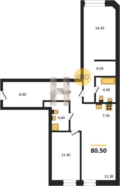 Площадь от 50.8 м2